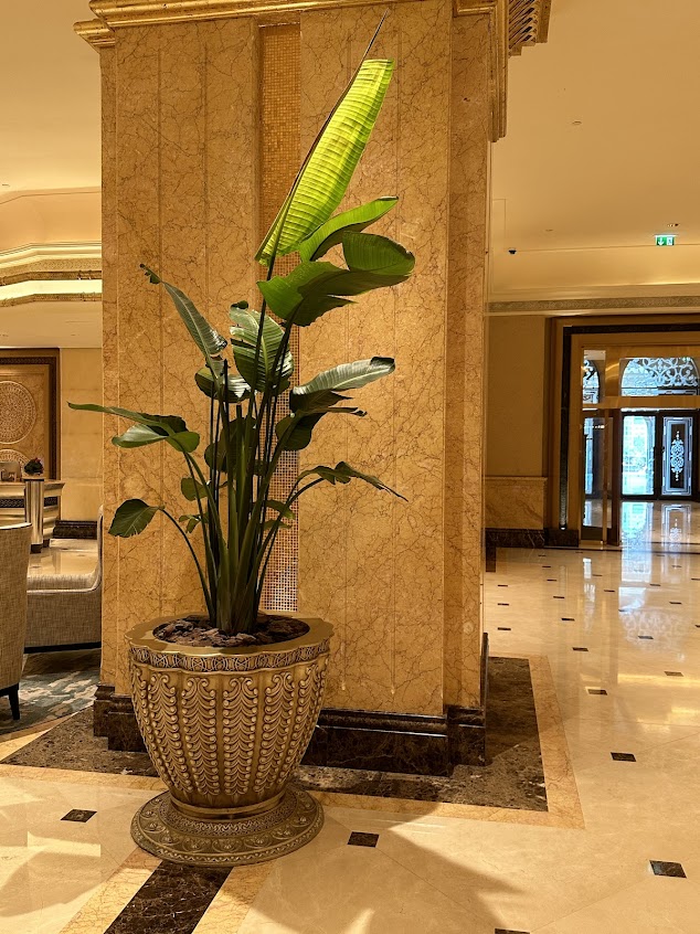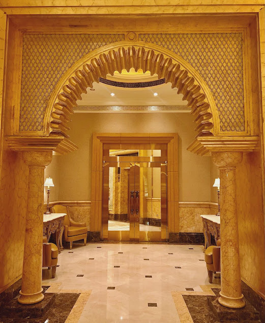 Emirates Palace is a luxurious 5-star hotel with a grand architectural design, offering everything from stunning gardens to private beaches. The hotel’s interior is rich in gold and marble.