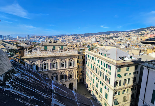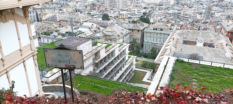 Spianata Castelletto is a terrace offering breathtaking views of Genoa’s rooftops, port, and sea.
