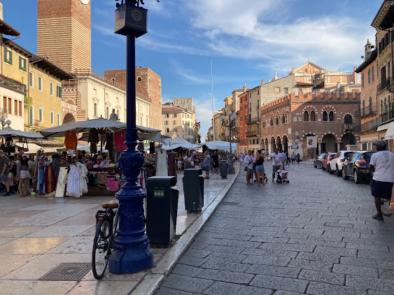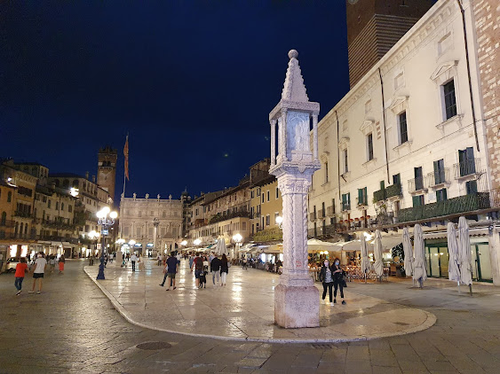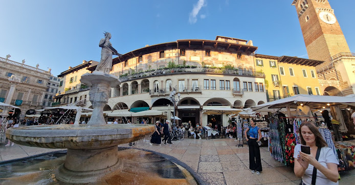 Once a Roman forum, it has been a central gathering place for centuries. The square features a fountain with a Roman statue called Madonna Verona.